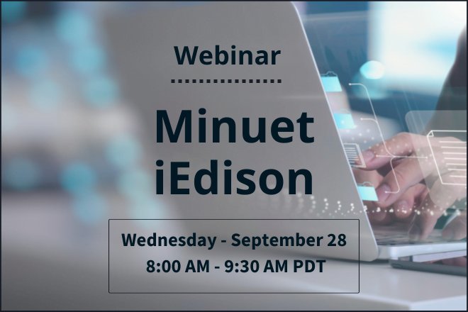 Please join us for a webinar on Wednesday, September 28, covering all the latest updates to iEdison in Minuet.